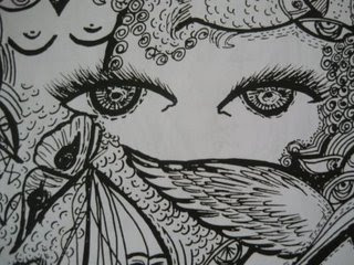 Desenho postado em banner: Clevane Pessoa em "Clevane Pessoa - Parte de um"A Mostra Graal Feminino Plural de Clevane Pessoa (Psicóloga, escritora e artista plástica) estará